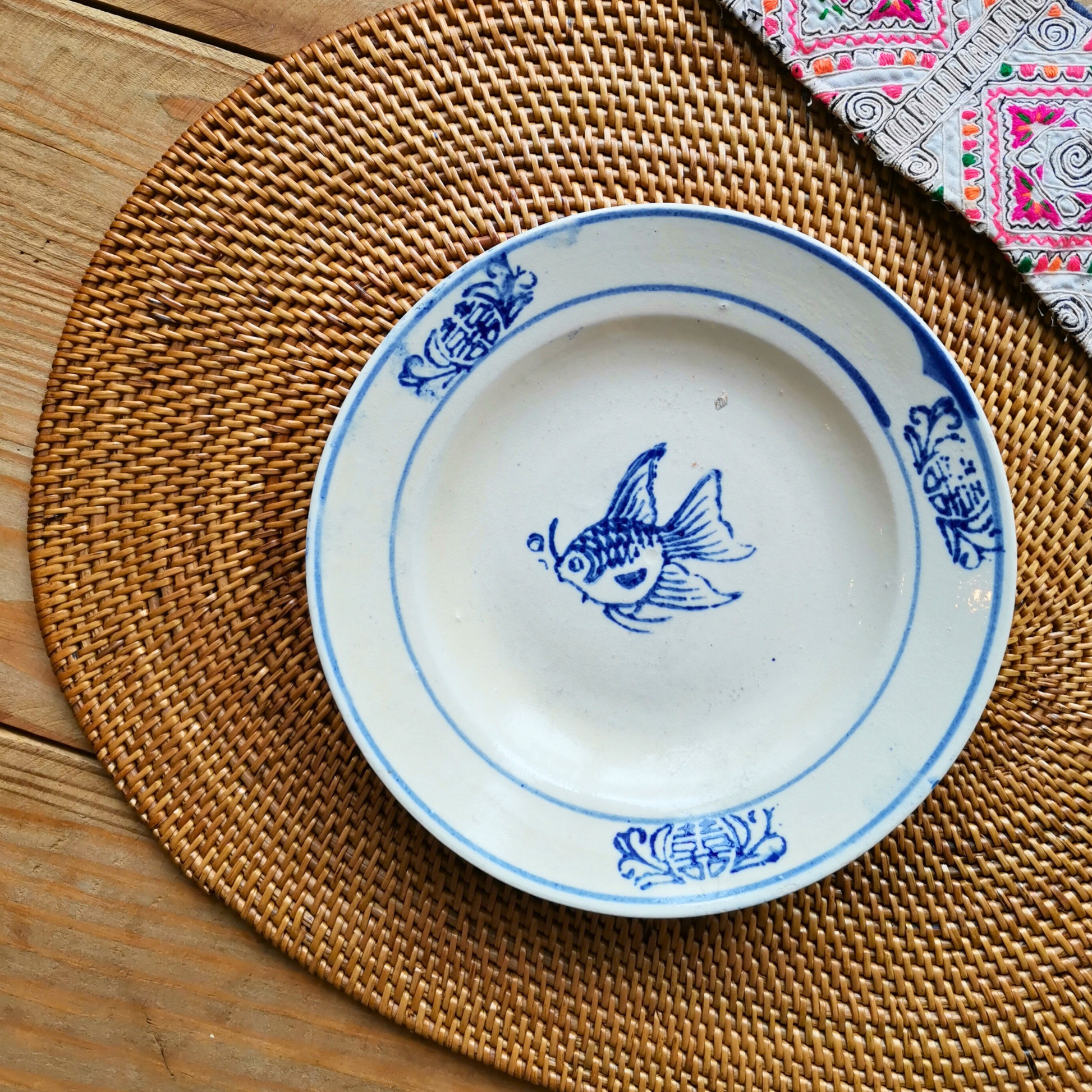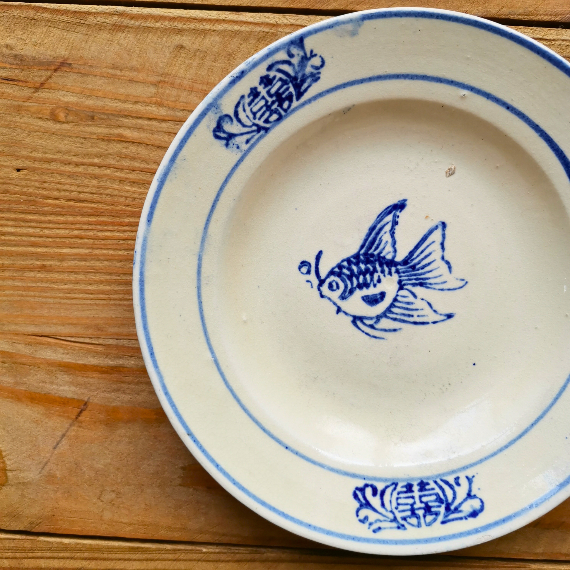 ベトナムヴィンテージ ソンべ焼き ライティウ焼き 金魚中皿A