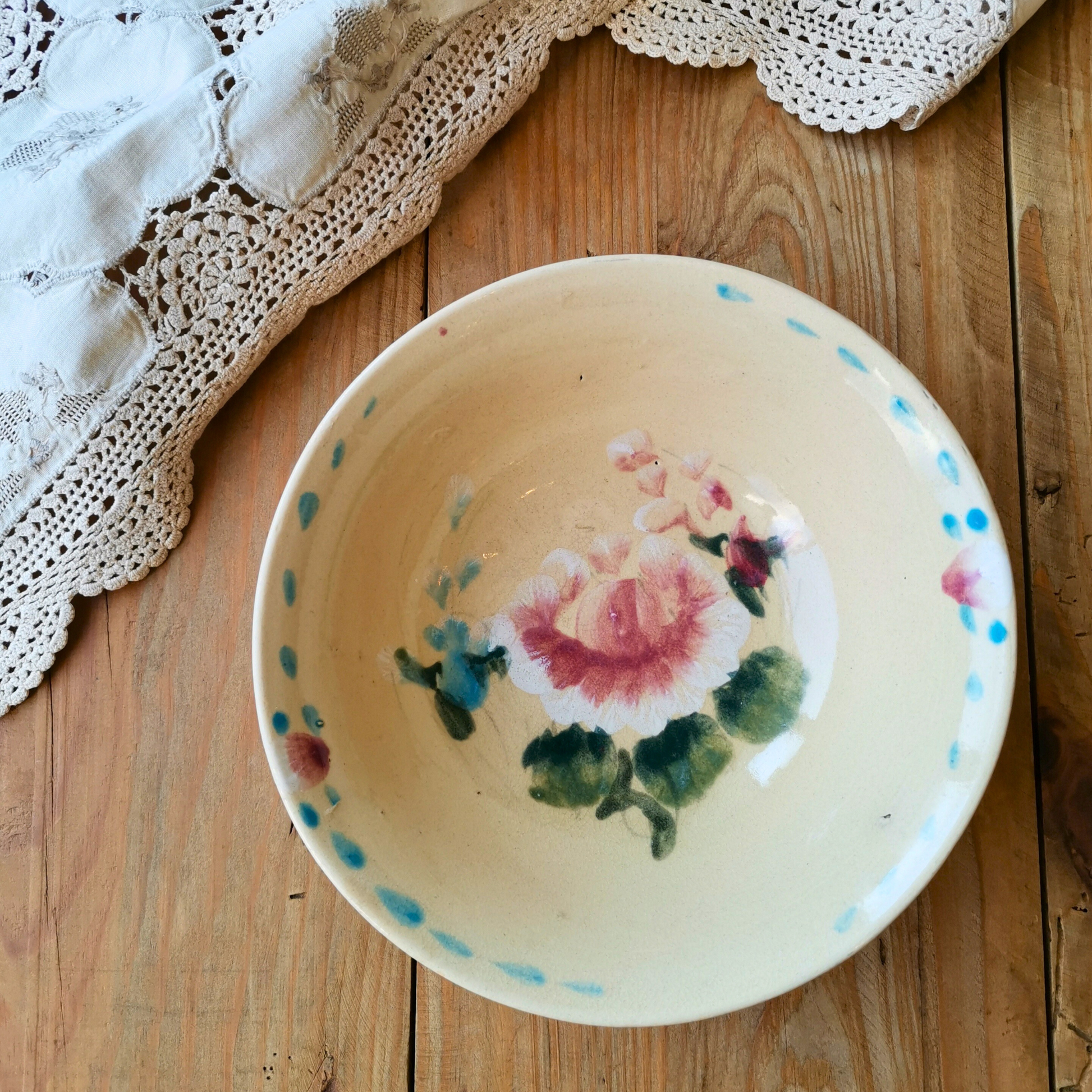 特徴的なのは、フランスの統治下におかれたときに発展した花柄の器です。素朴ながらも存在感があり、普段の食卓に置くだけで異国の空気を感じさせてくれる器。